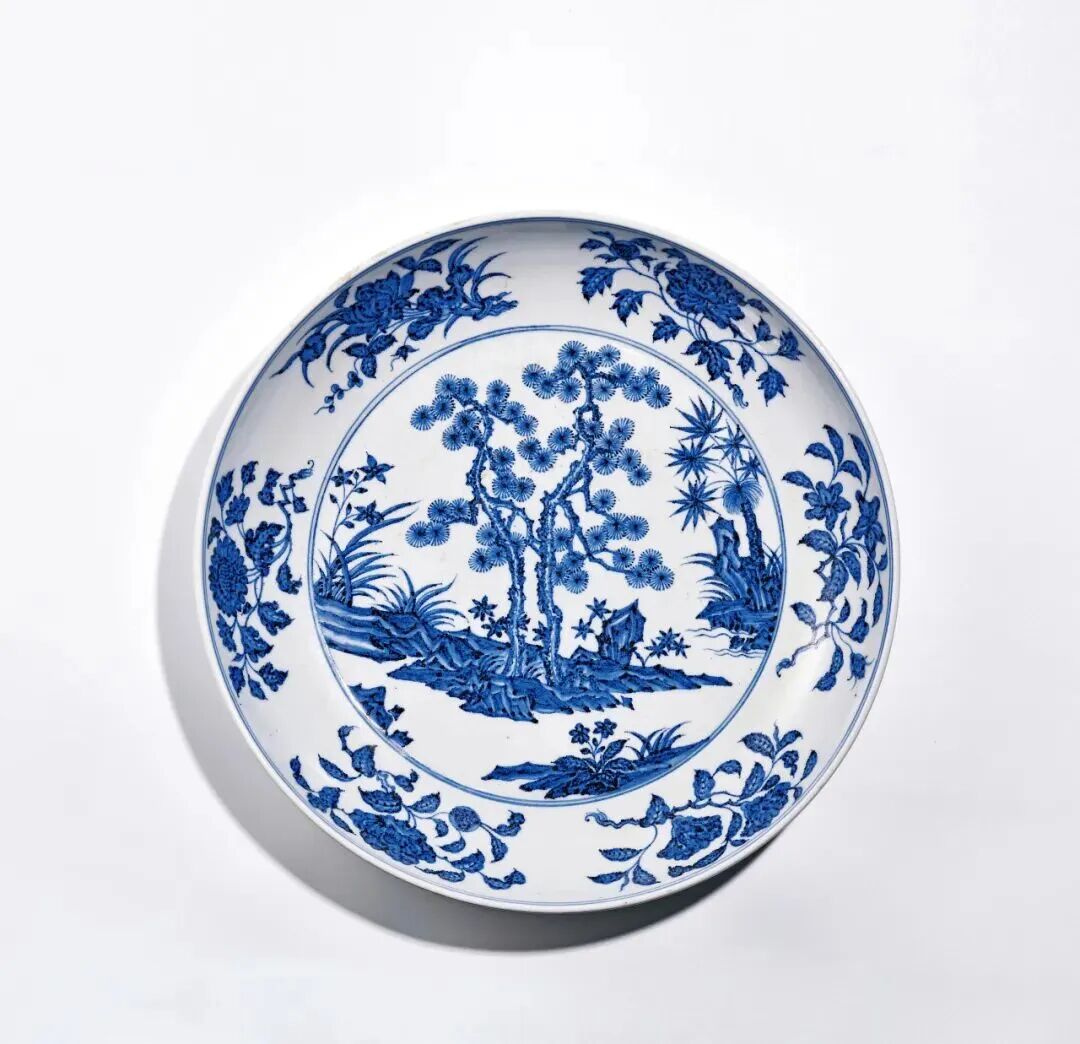 明永乐 青花松竹梅岁寒三友图大盘