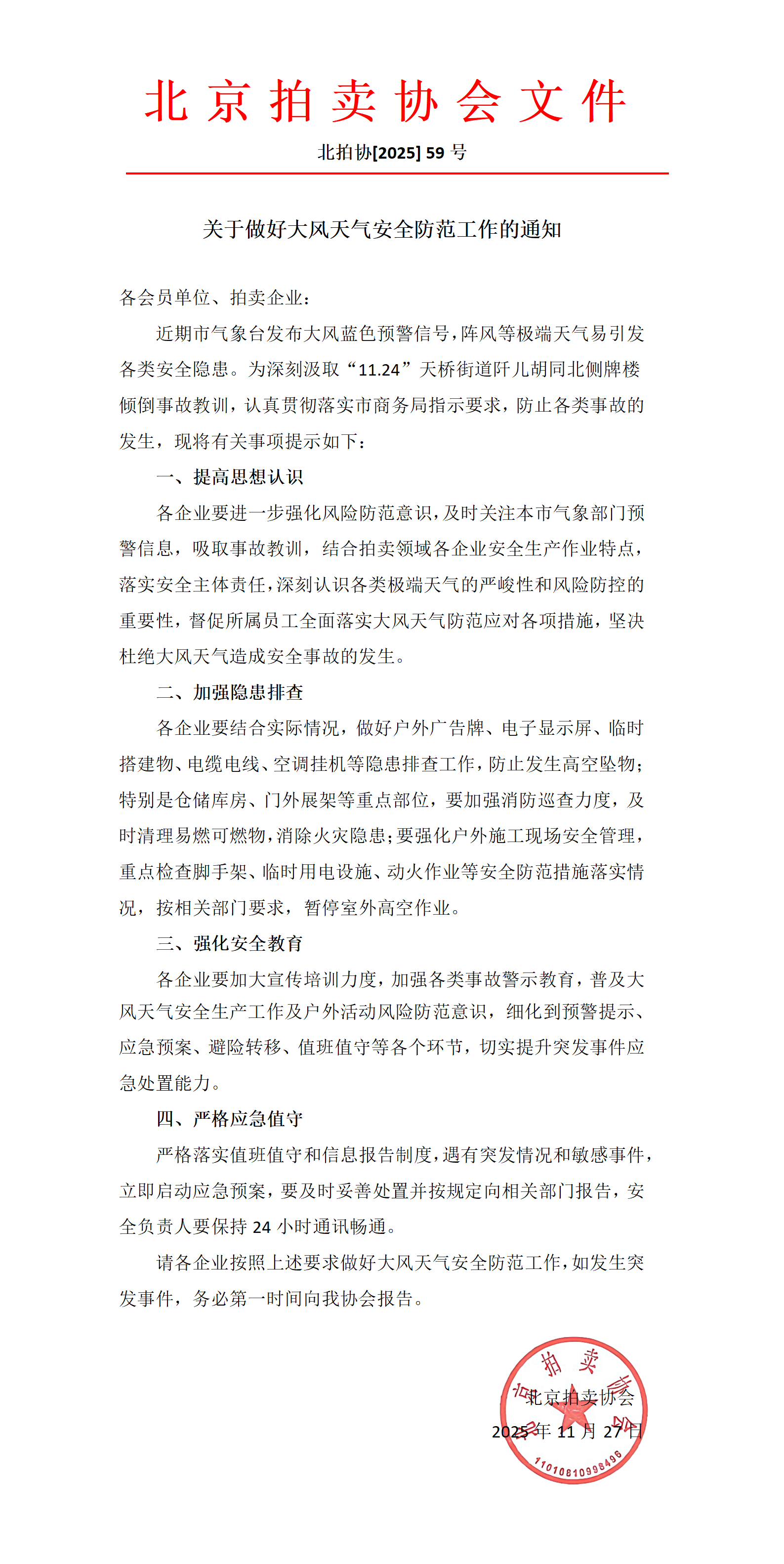 关于发布2025年北京市信用承诺企业 拍卖企业(第三批)名单的公告