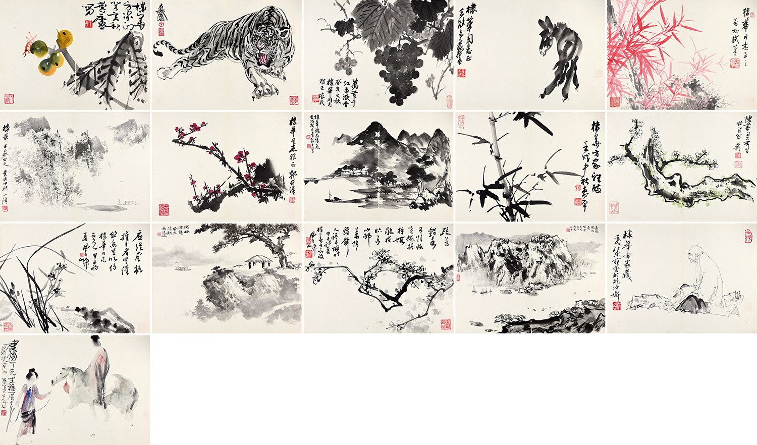 启功·黄胄·董寿平·谢稚柳等十五位近代名人绘画册