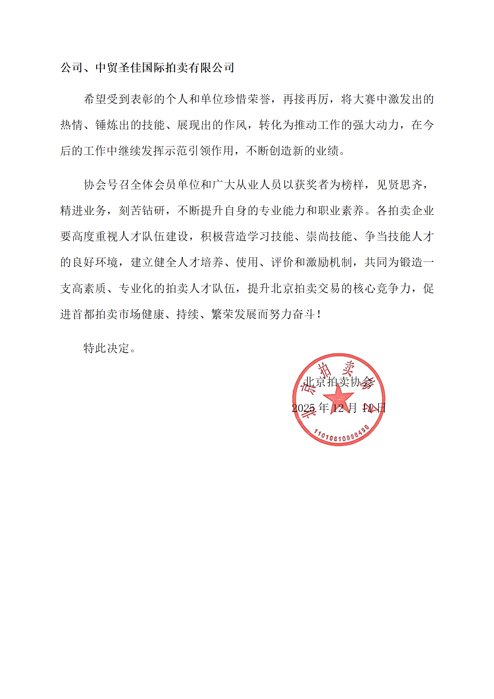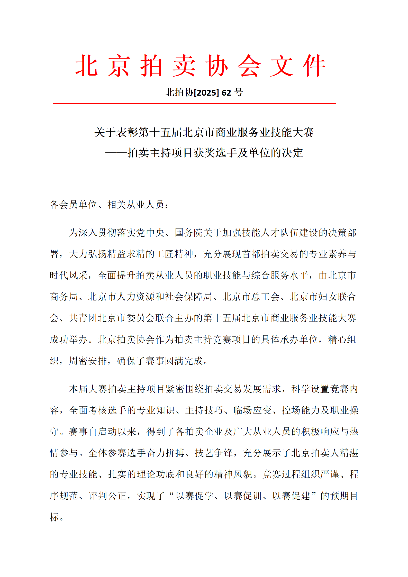 关于推选2025年度北京拍卖协会先进单位和先进工作者的通知