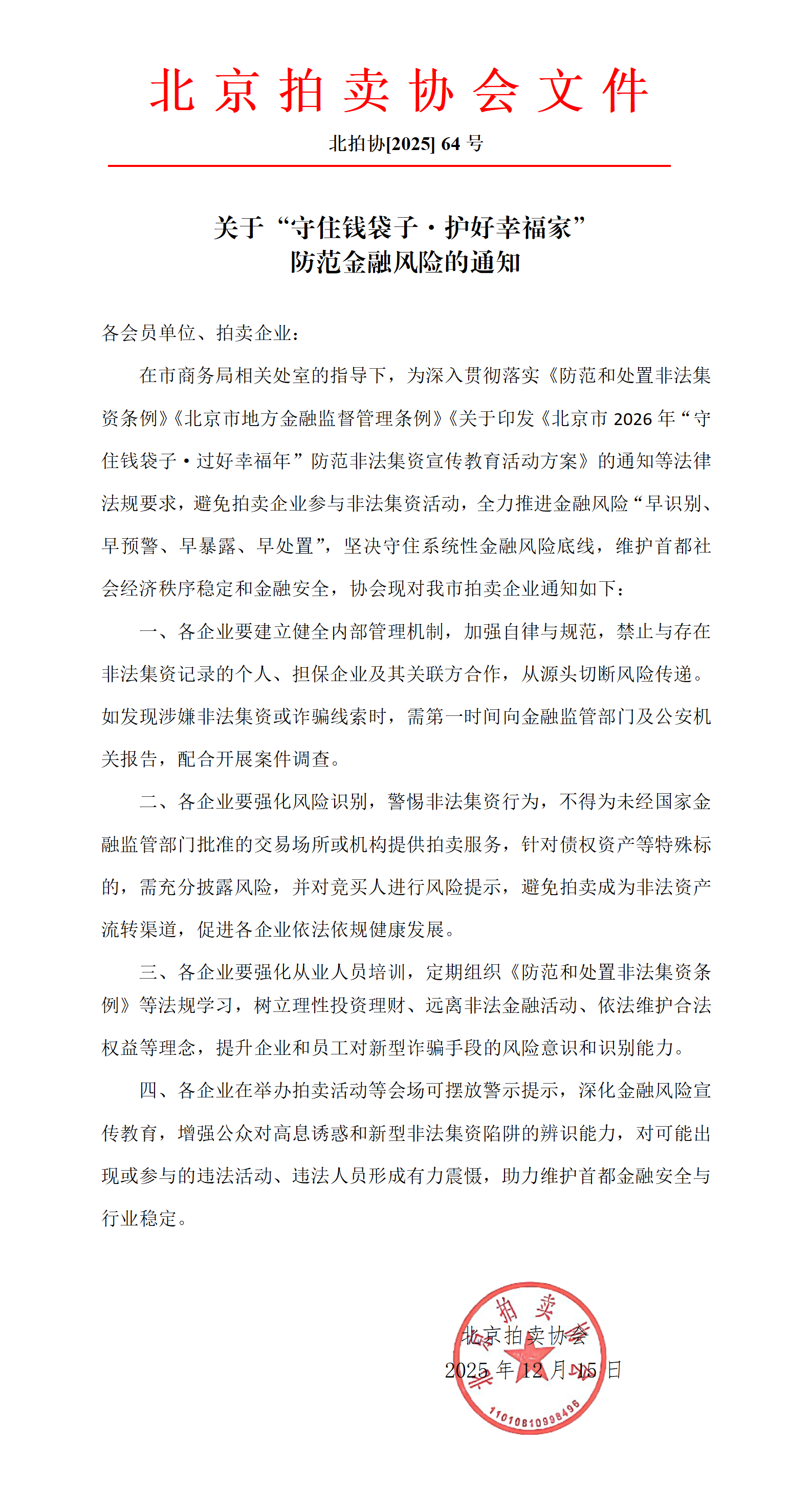 关于发布2025年北京市信用承诺企业拍卖企业(第四批)名单的公告