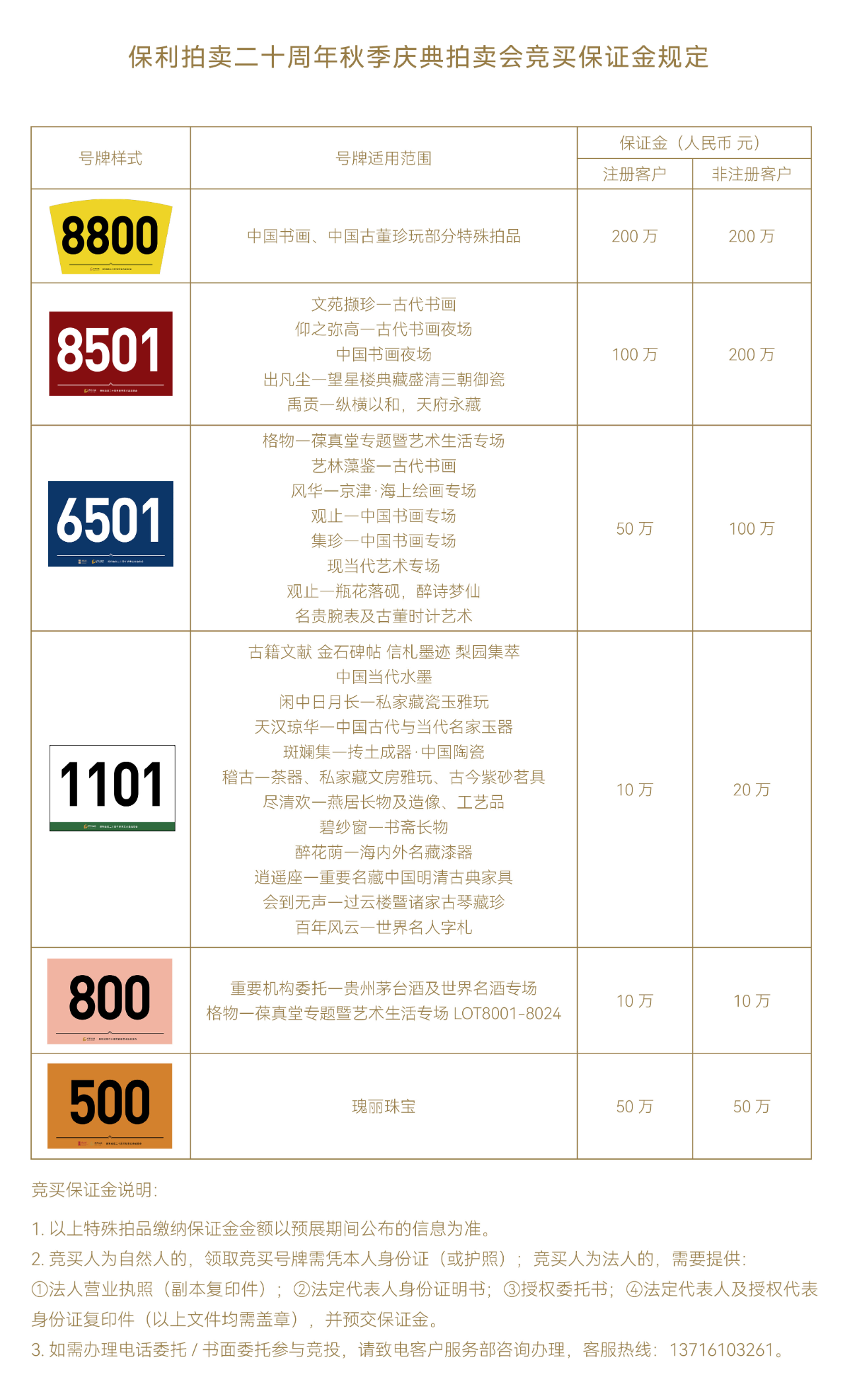 (1)电话委托竞投:若买家不能出席拍卖会,可在完成竞投登记后,填写签署《委托竞投授权书》,收到《委托竞投授权书》后的相关工作人员会于拍卖会进行时,通过电话与买家实时沟通,在现场代为出价竞拍。