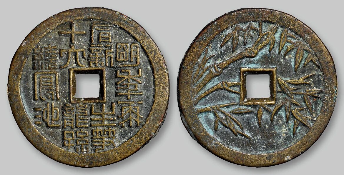 8081 清代咏竹诗背四君子翠竹图花钱/GBCA 美88