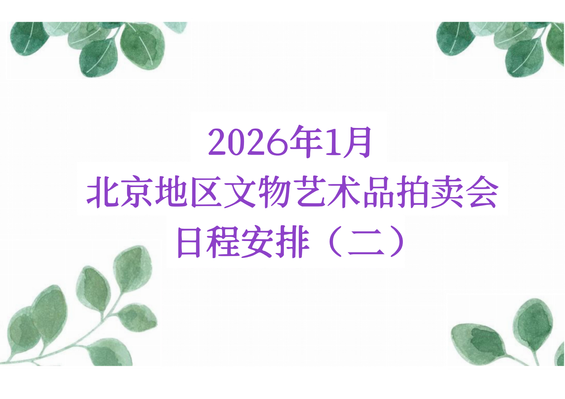 2026年1月北京地区文物艺术品拍卖会日程安排(二)