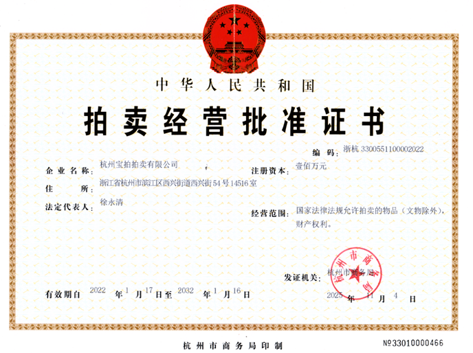 受委托,杭州宝拍拍卖有限公司(以下简称“拍卖人”)定于2026年02月05日10时至2026年02月06日10时止(延时除外)在特资圈资产竞价网络平台上(网址:https://www.teziquan.com,百度或手机应用市场搜索关注“特资圈”)对以下竞买标的物进行公开竞价活动,现公告如下: