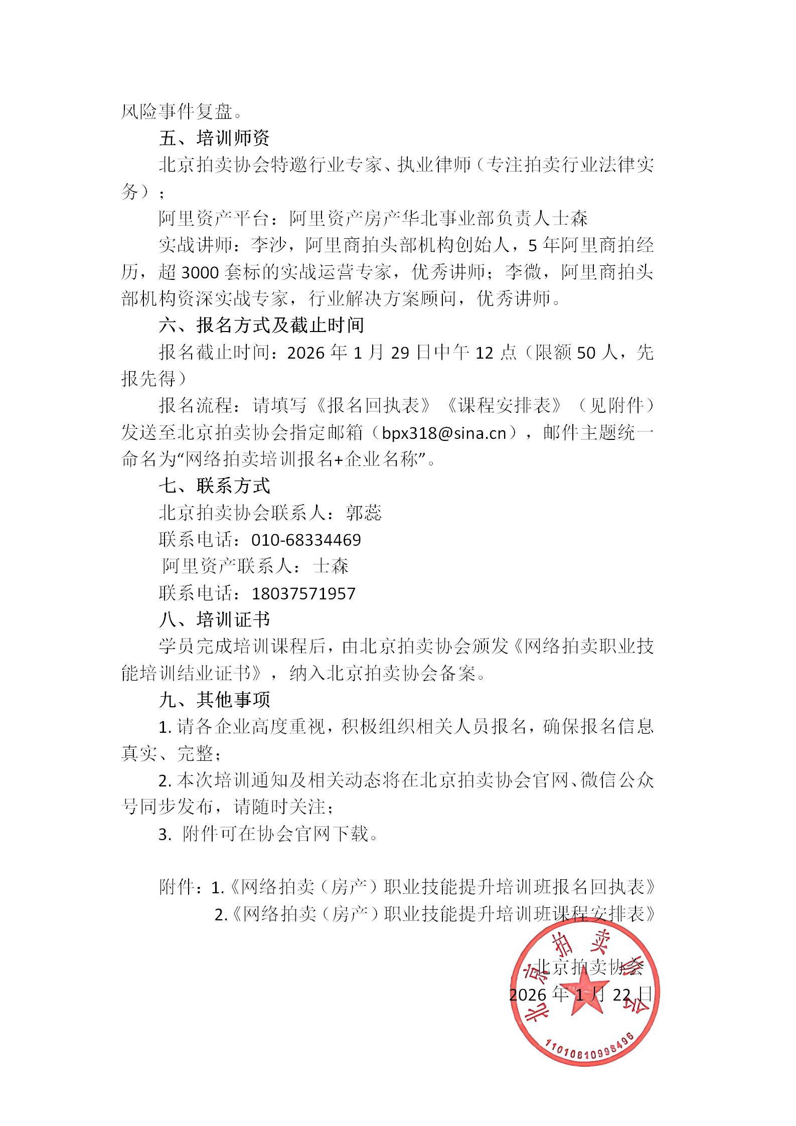北京拍卖协会 阿里资产房产 关于联合举办网络拍卖(房产)职业技能提升培训班的通知