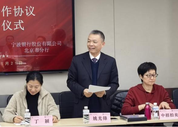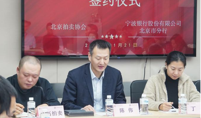 签约仪式上,宁波银行股份有限公司北京分行陈伟副行长、北京拍卖协会姚光锋会长分别致辞。