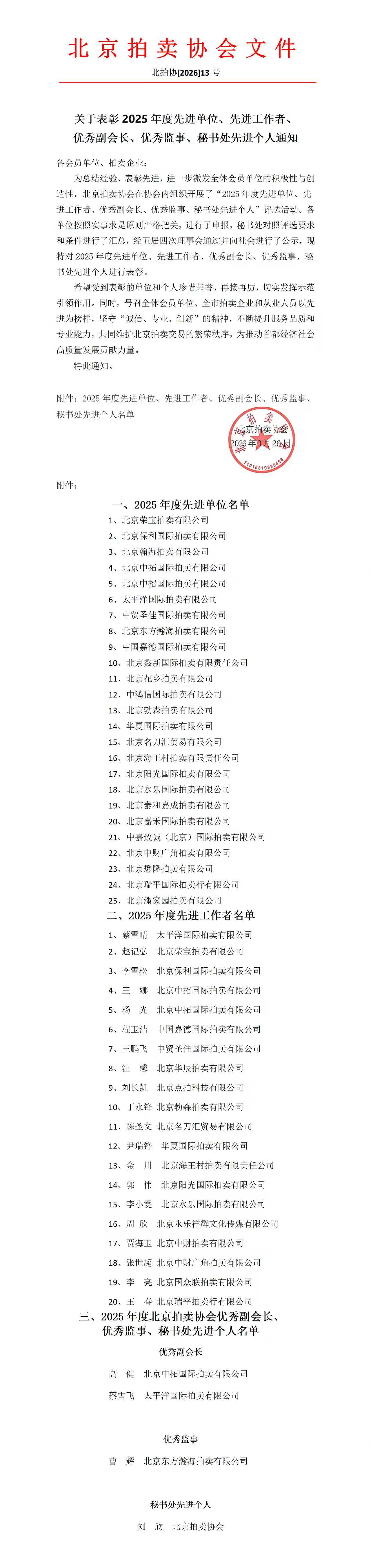 关于发布2026年北京市信用承诺企业拍卖企业(首批)名单的公告