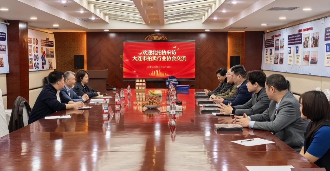 为深化区域拍卖交流合作,推动跨区域资源整合与规范发展,3月29日下午,北京拍卖协会会长姚光锋率协会副秘书长刘欣、郭蕊及企业人员一行到访大连调研交流。辽宁省拍卖行业协会会长刘志坚、大连市拍卖行业协会会长尹国丹、副会长李永辉、秘书长王朝朝和副秘书长韩基伟等热情接待了姚会长一行。
