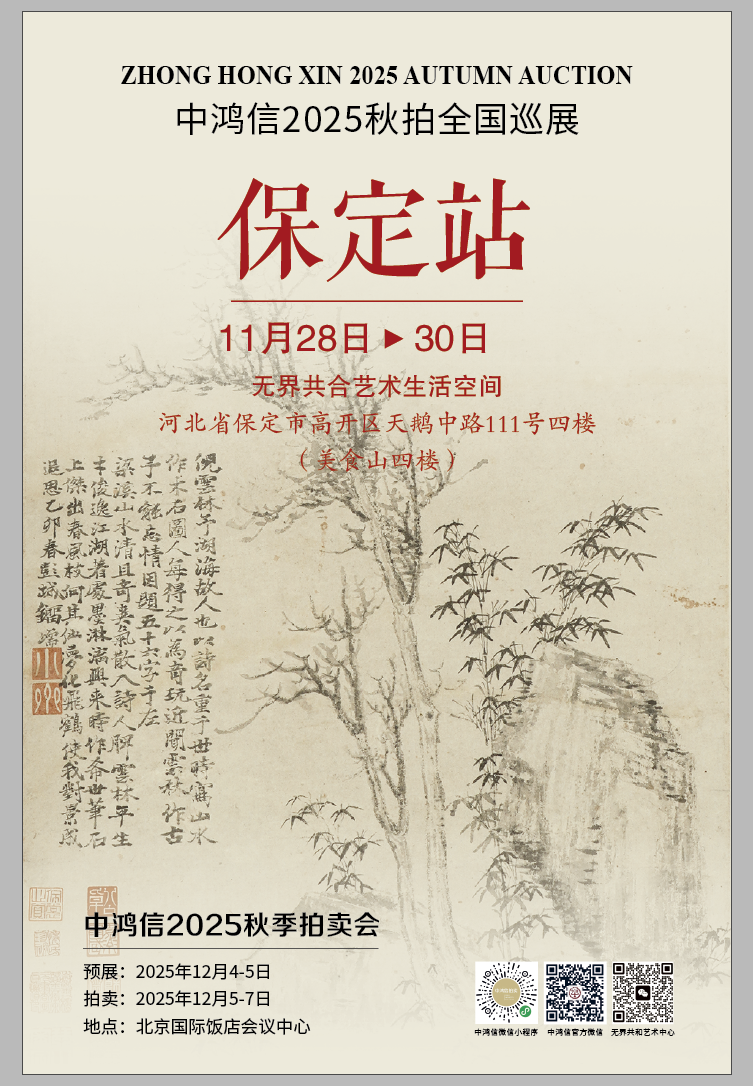 ——中鸿信2025秋拍巡展五城联动12月3日-7日北京国际饭店会议中心敬请莅临!