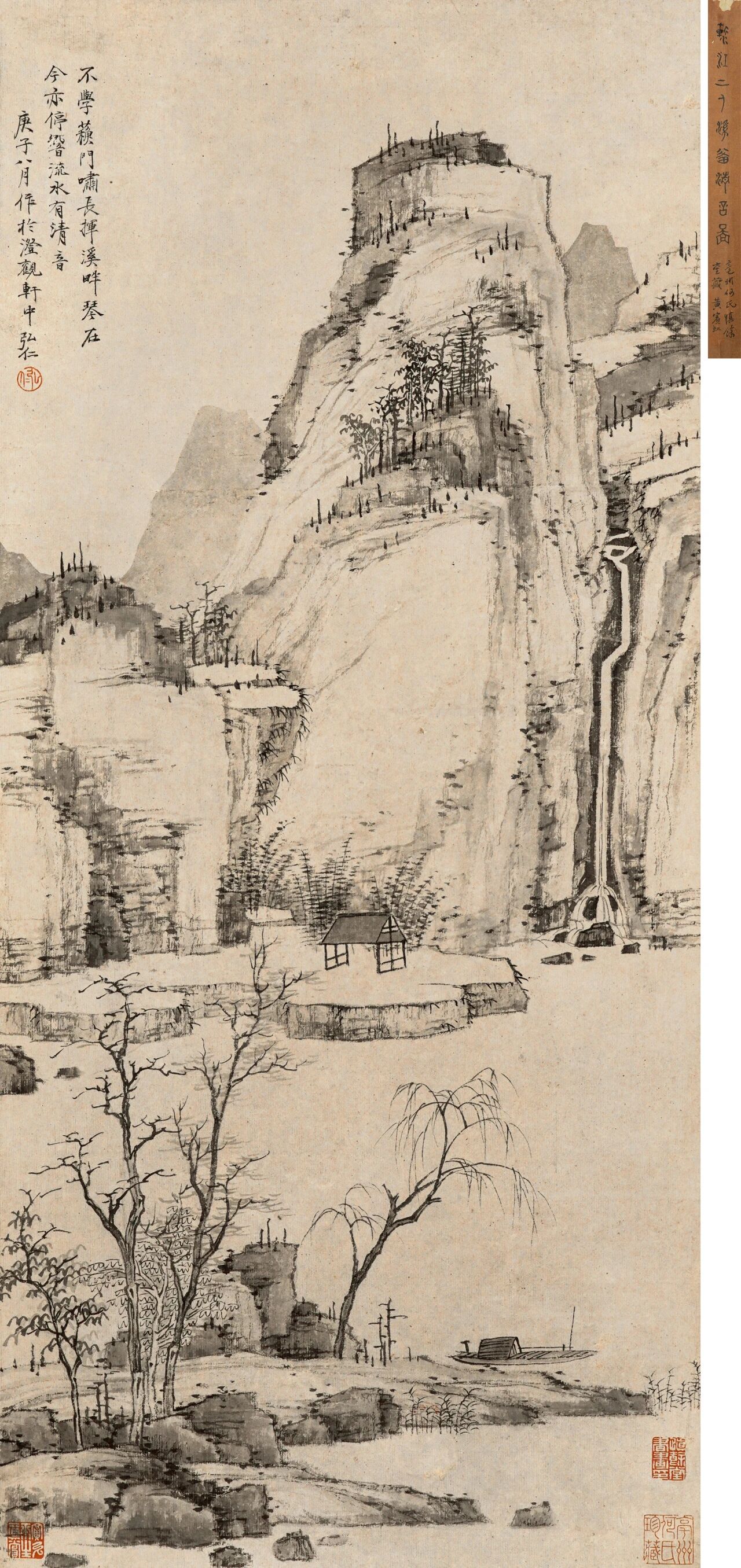 【款识】不学苏门啸,长挥溪畔琴。在今亦停响,流水有清音。庚子八月作于澄观轩中,弘仁。