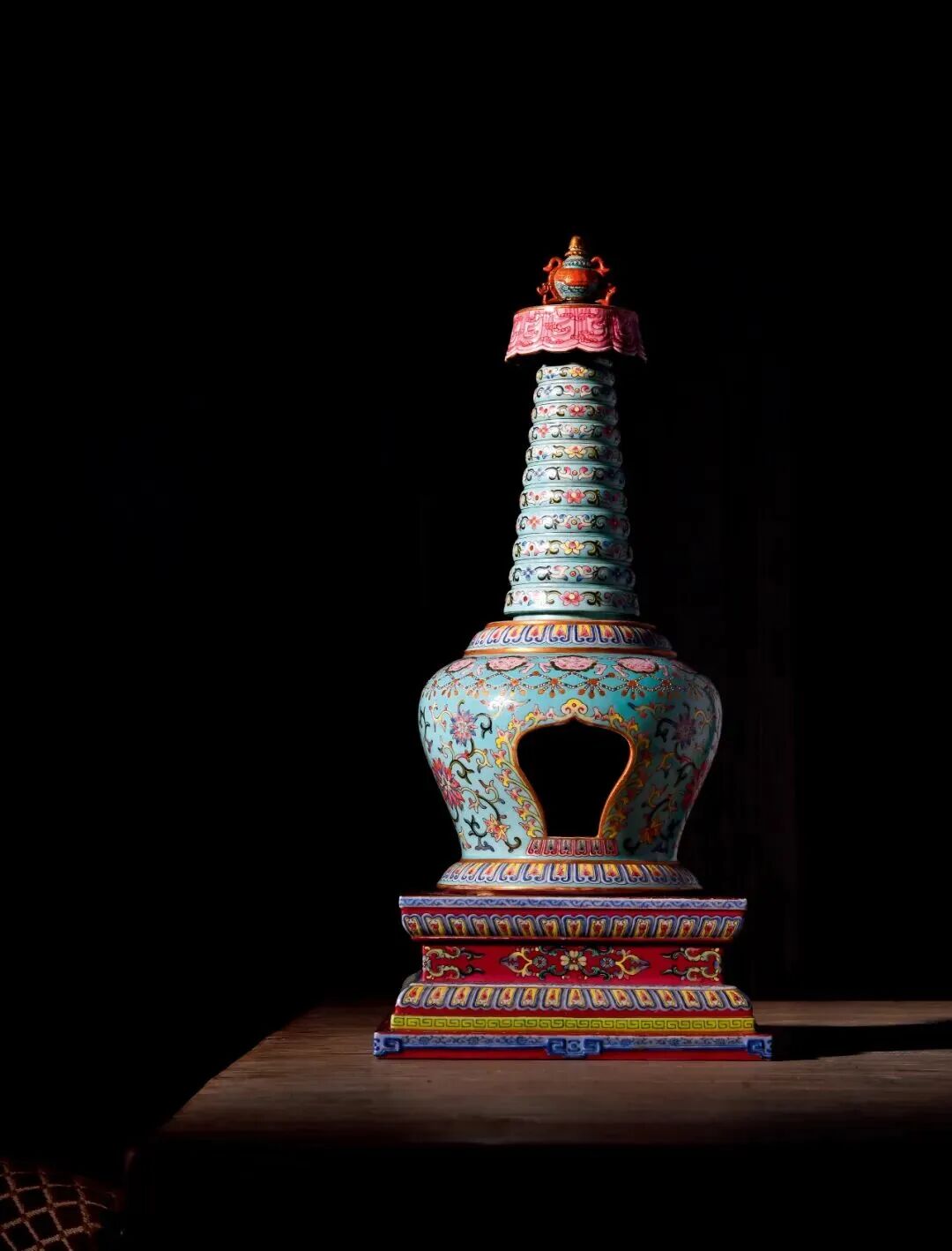 2.故宫博物院藏 清乾隆 粉彩勾莲纹瓷佛塔