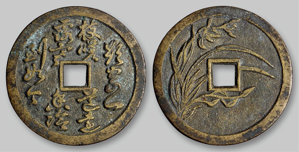 8080 清代咏兰诗背四君子兰花图花钱/GBCA 美88
