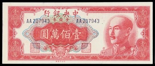 是当时中央政府发行的最高面额钞票,色彩鲜艳,品相几近全新。