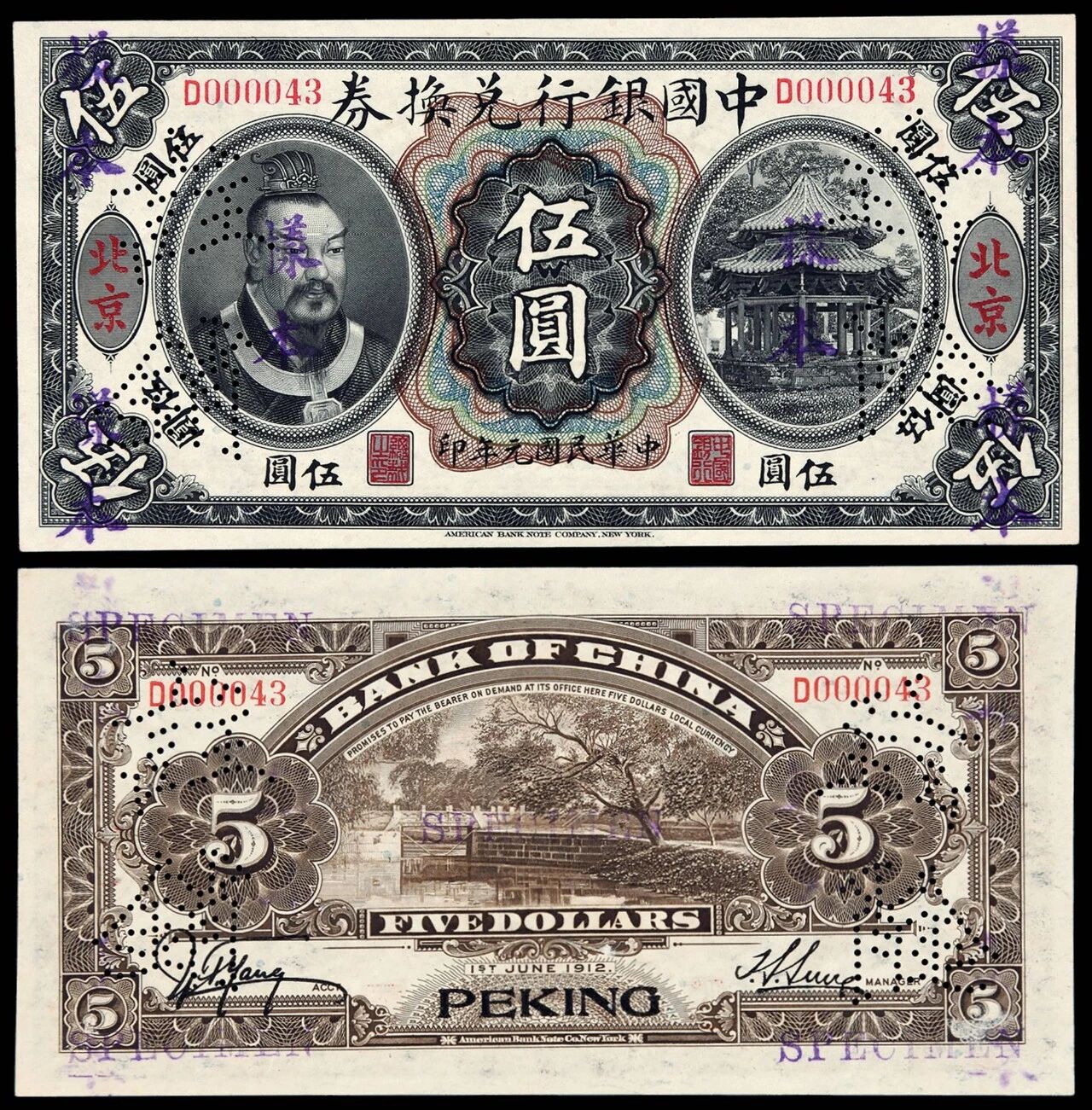 8569 民国元年黄帝像中国银行兑换券伍圆样票