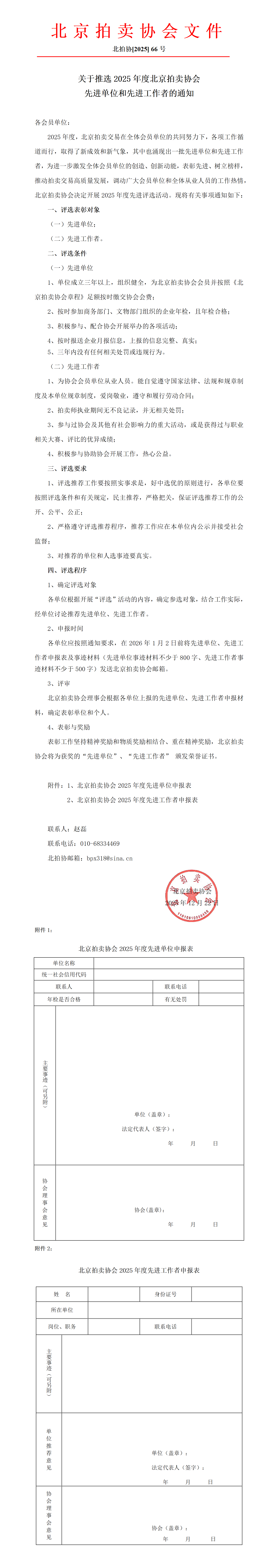 关于推选2025年度北京拍卖协会先进单位和先进工作者的通知