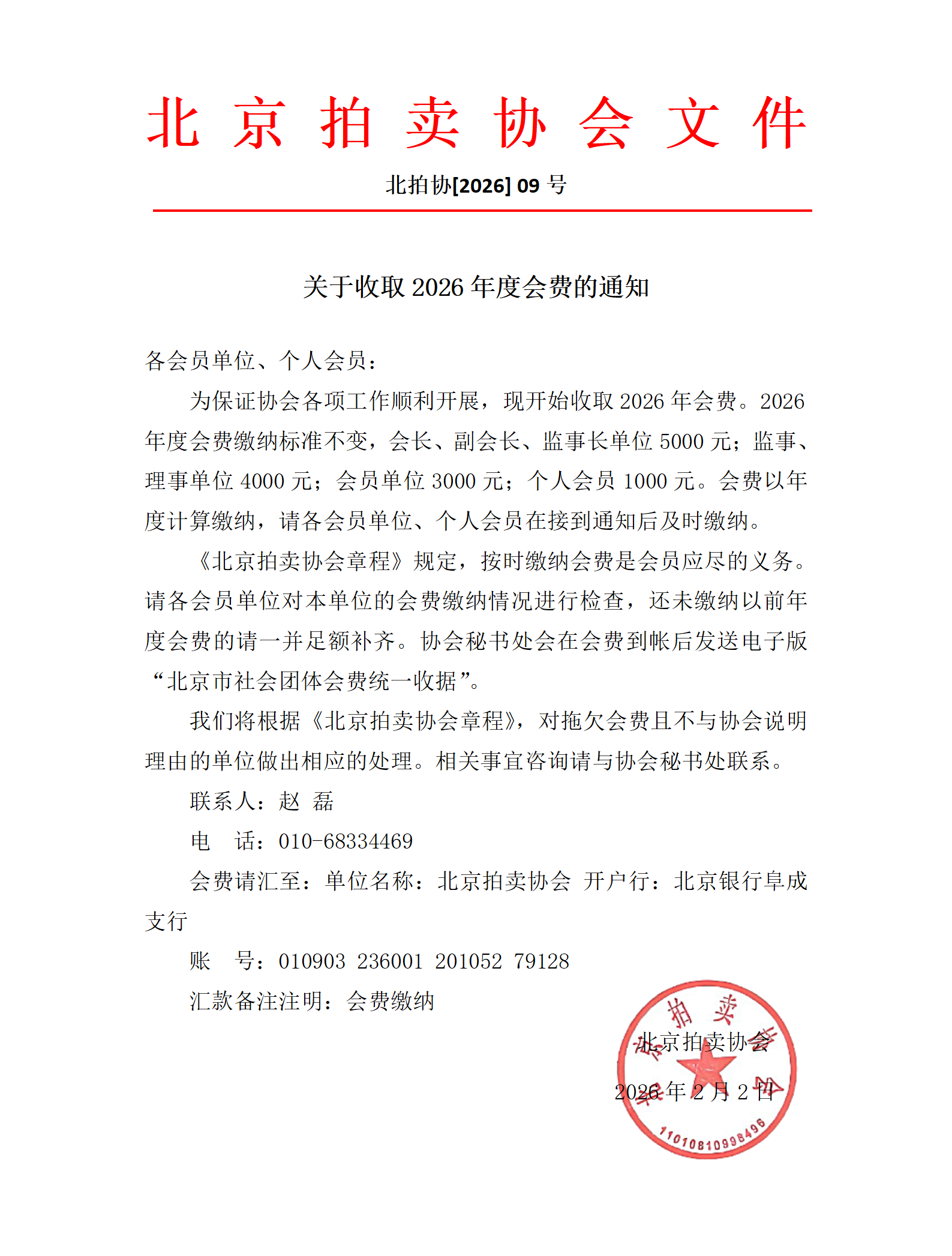 关于收取2026年度会费的通知