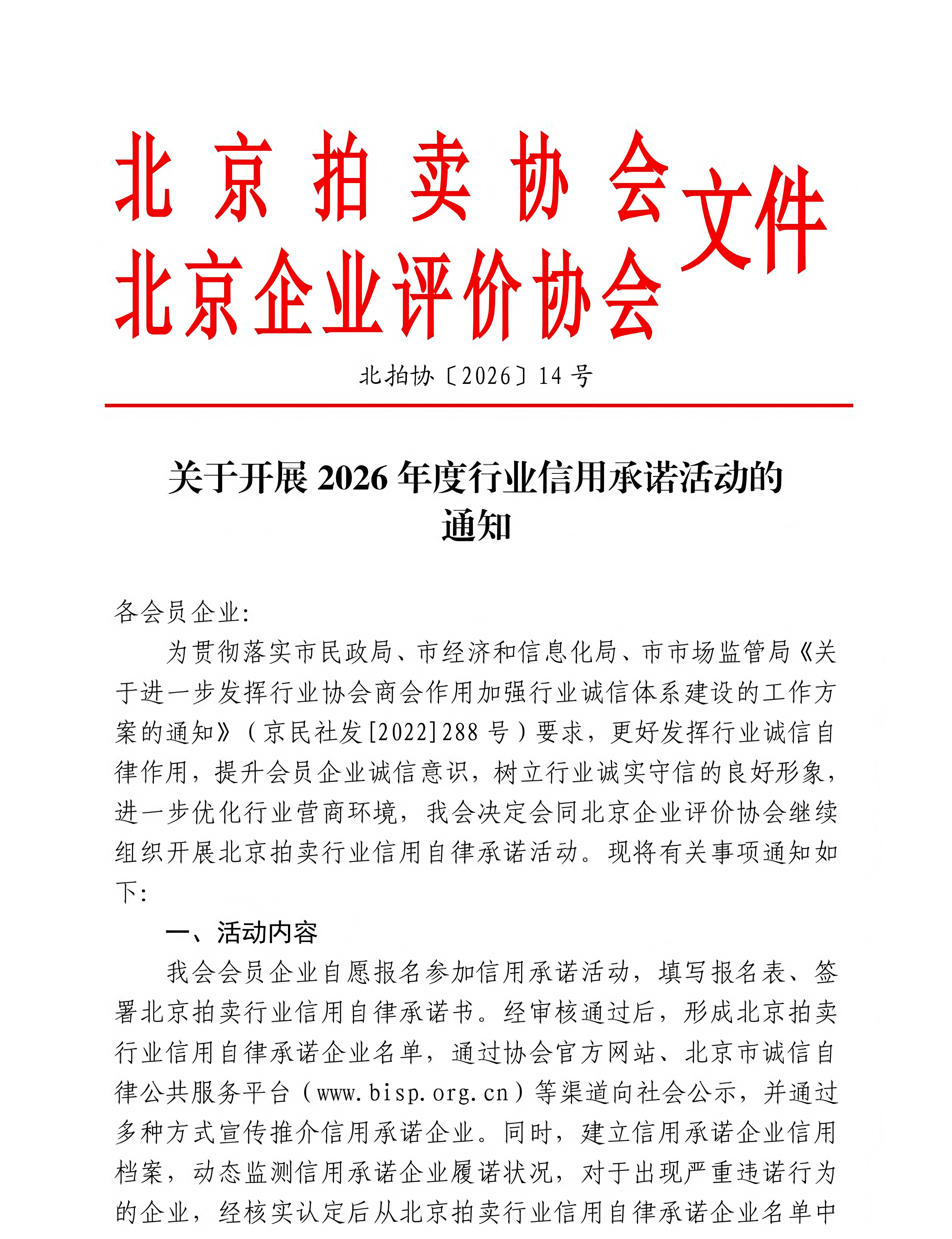 关于发布2025年北京市信用承诺企业拍卖企业(第四批)名单的公告