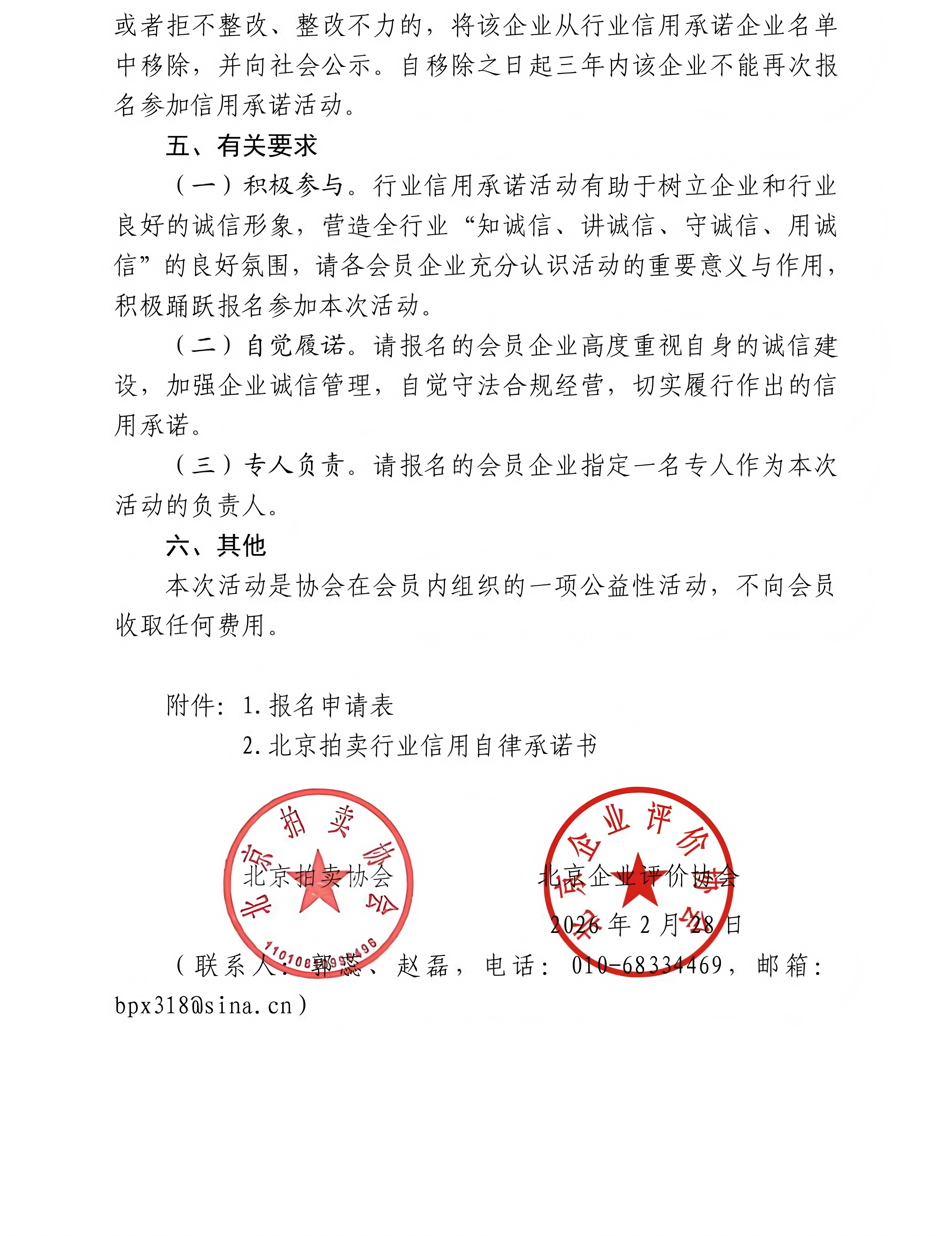 关于发布《拍卖交易自律性守信激励和失信惩戒措施清单制度》、《北京拍卖协会资产拍卖业务佣金合规指引》的通知