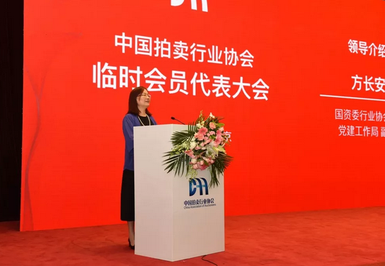 7月29日下午,中国拍卖行业协会临时会员代表大会在京召开,中国物流与采购联合会会长何黎明、商务部流通业发展司司长郑文、国资委行业协会商会党建工作局副局长方长安、海关总署财务司综合处处长龙夫春、商务部流通业发展司中小企业处处长杨宝京、国家市场监管总局市场规范管理司市场处处长张广领、国资委行业协会商会党建工作局人事处处长毛金锋、人力资源与社会保障部专业技术人员管理司职称处处长付永生、公安部治安局娱乐场所和特种行业治安管理工作指导处处长李金科、中国拍卖行业协会名誉会长张延华、中拍协原会长余平、中石油资产管理有限公司资产管理部总经理徐黎、中拍协会长黄小坚、副会长徐勉之、雷敏、苗华甫、王中明、李伟、张力、法勇生、陈志坤、祁志峰、韩涛,秘书长李卫东和466位中拍协会员单位代表参加会议,会议由雷敏副会长主持。